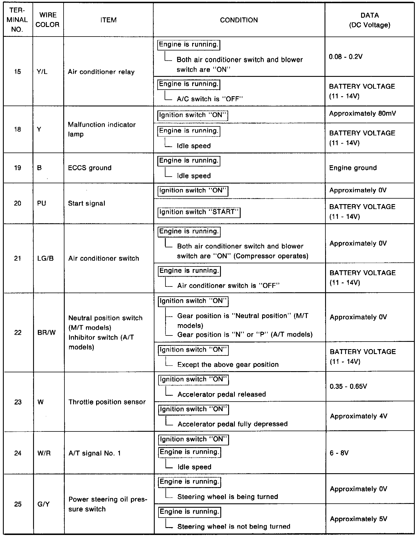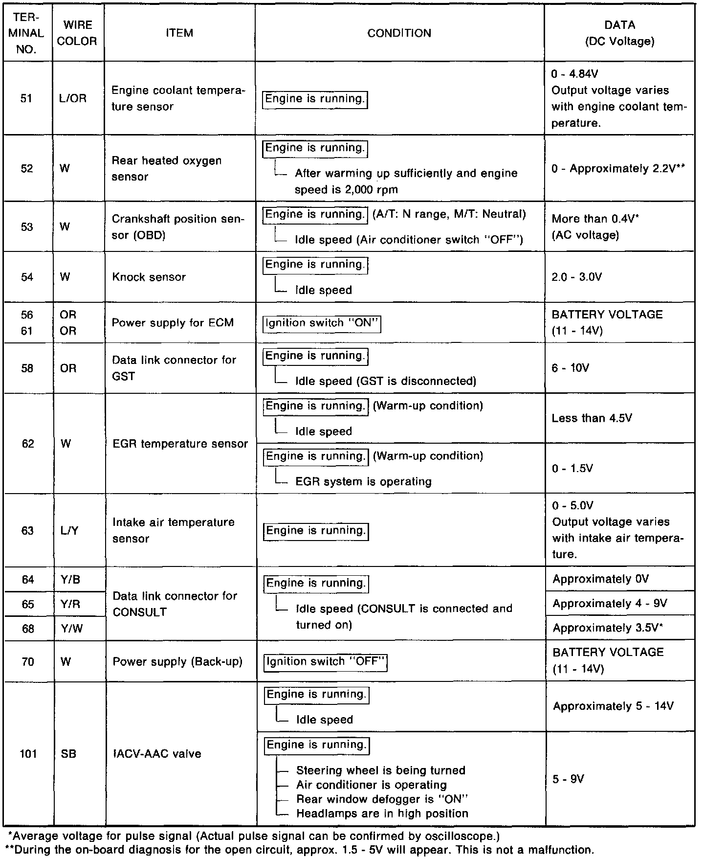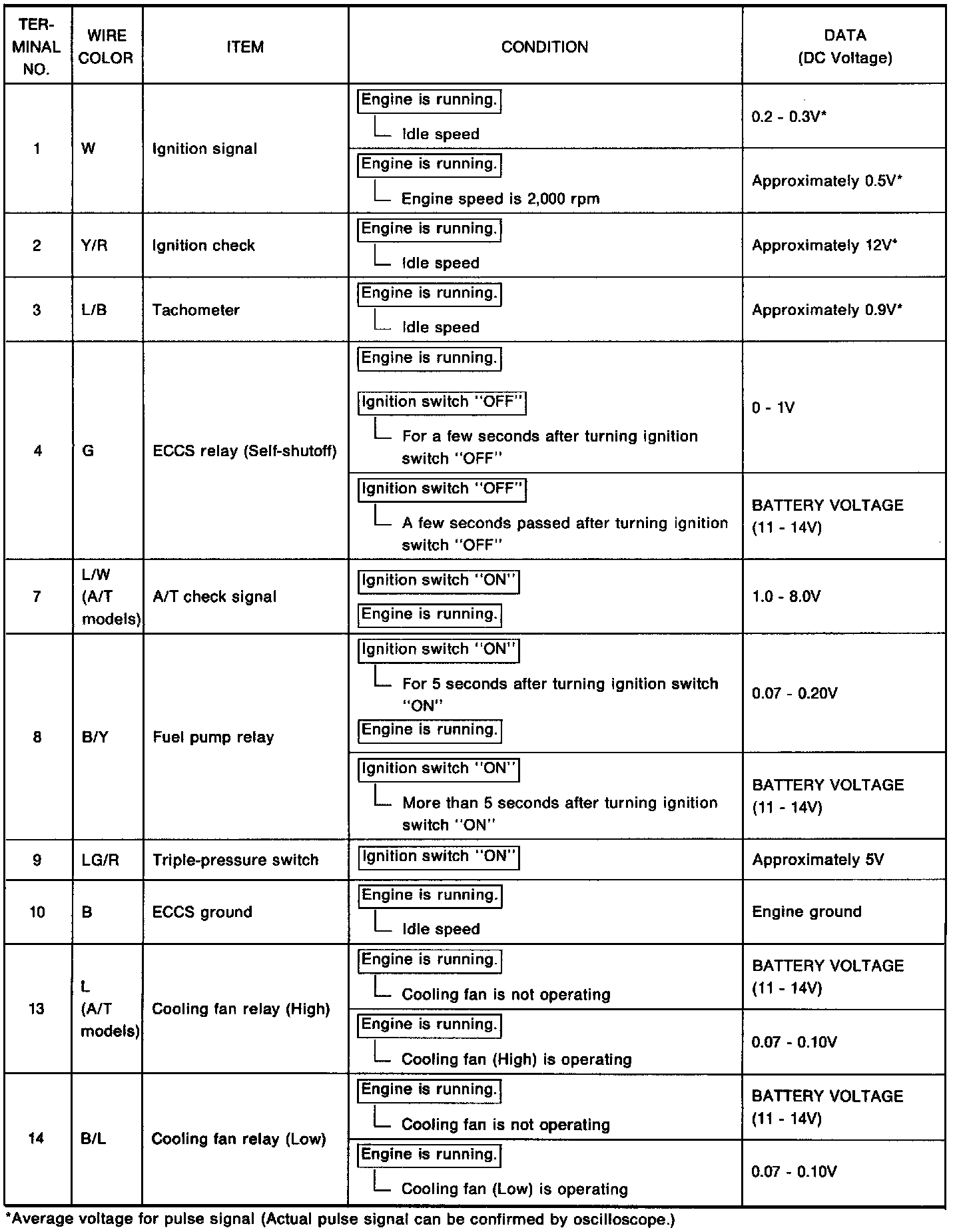 Specification data are reference values and are measured between each terminal and (43) (ECCS ground).