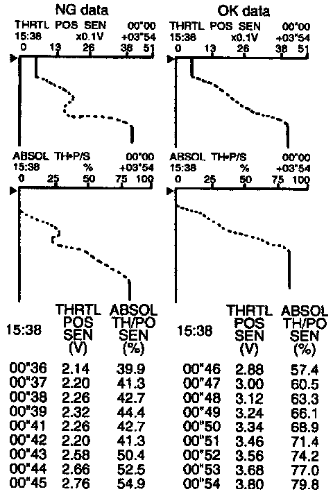 3) Select "THROTTLE POS SEN" and "ABSOL TH/PO SEN" in "DATA MONITOR" mode with CONSULT.