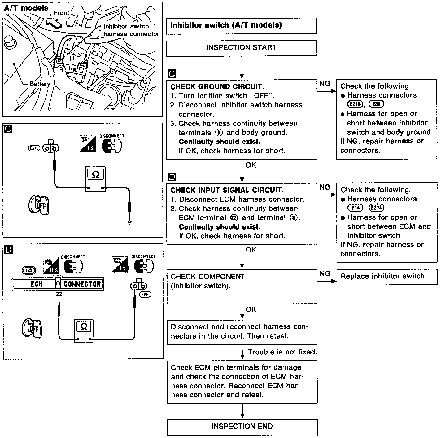 6. If NG on step 4, replace inhibitor switch.