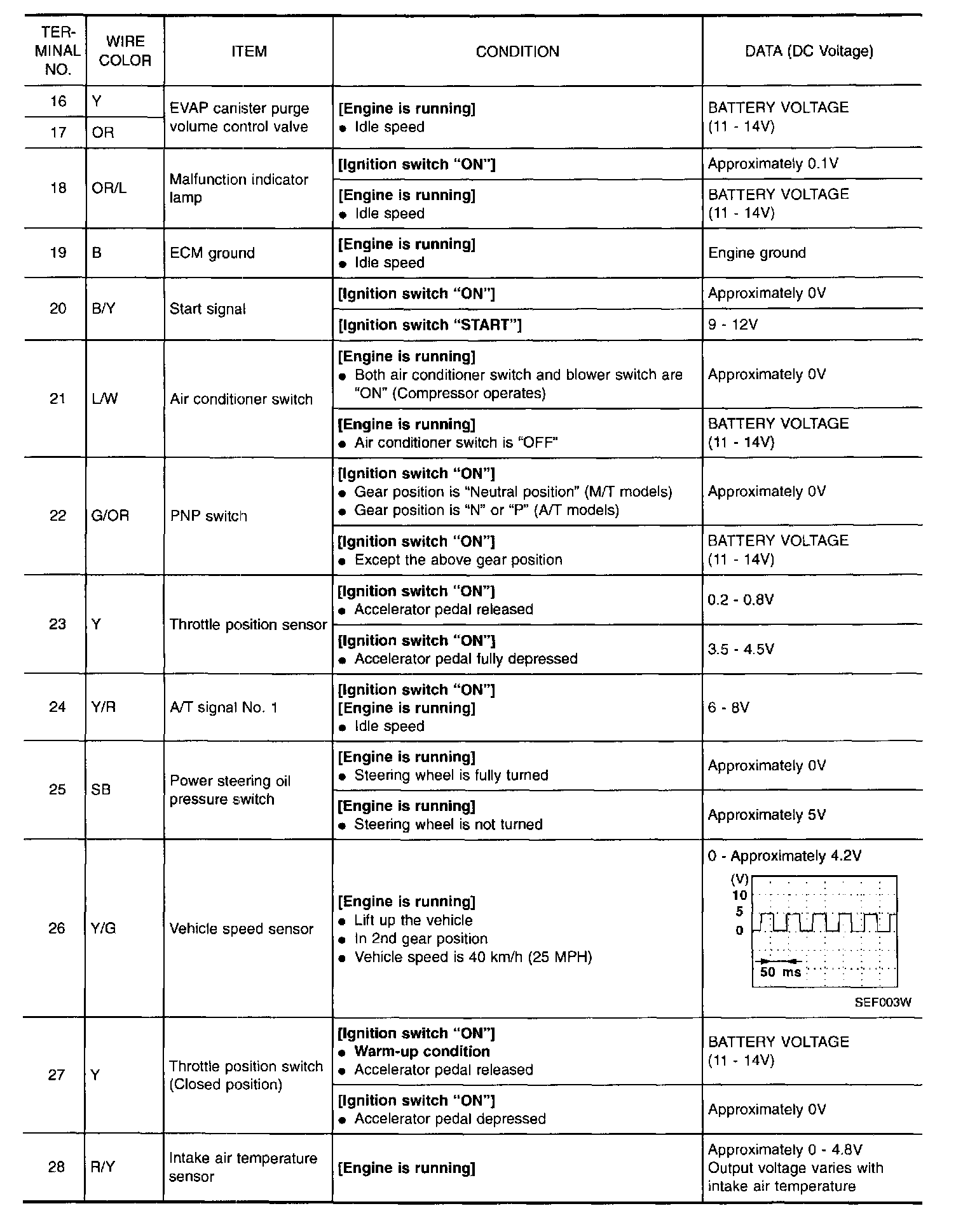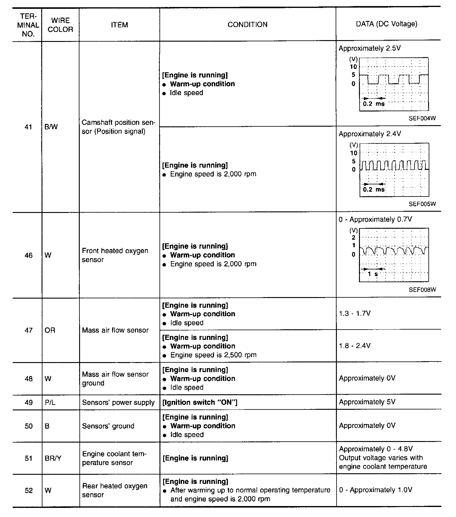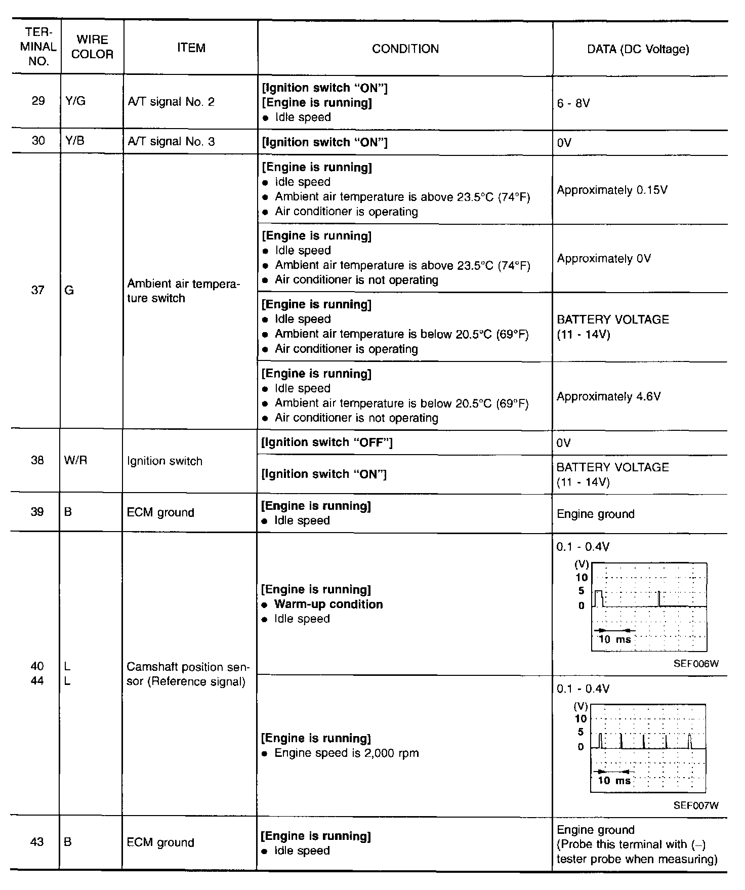 Specification data are reference values and are measured between each terminal and 43 (ECM ground).