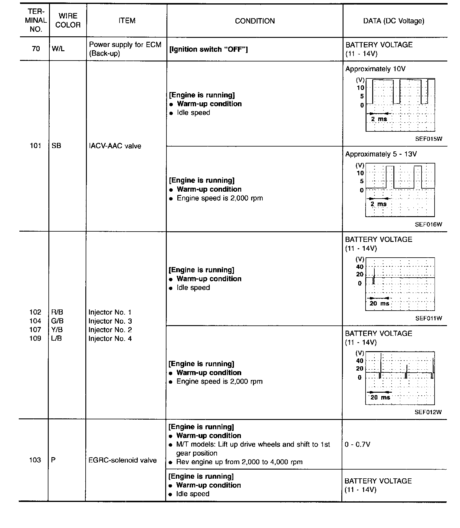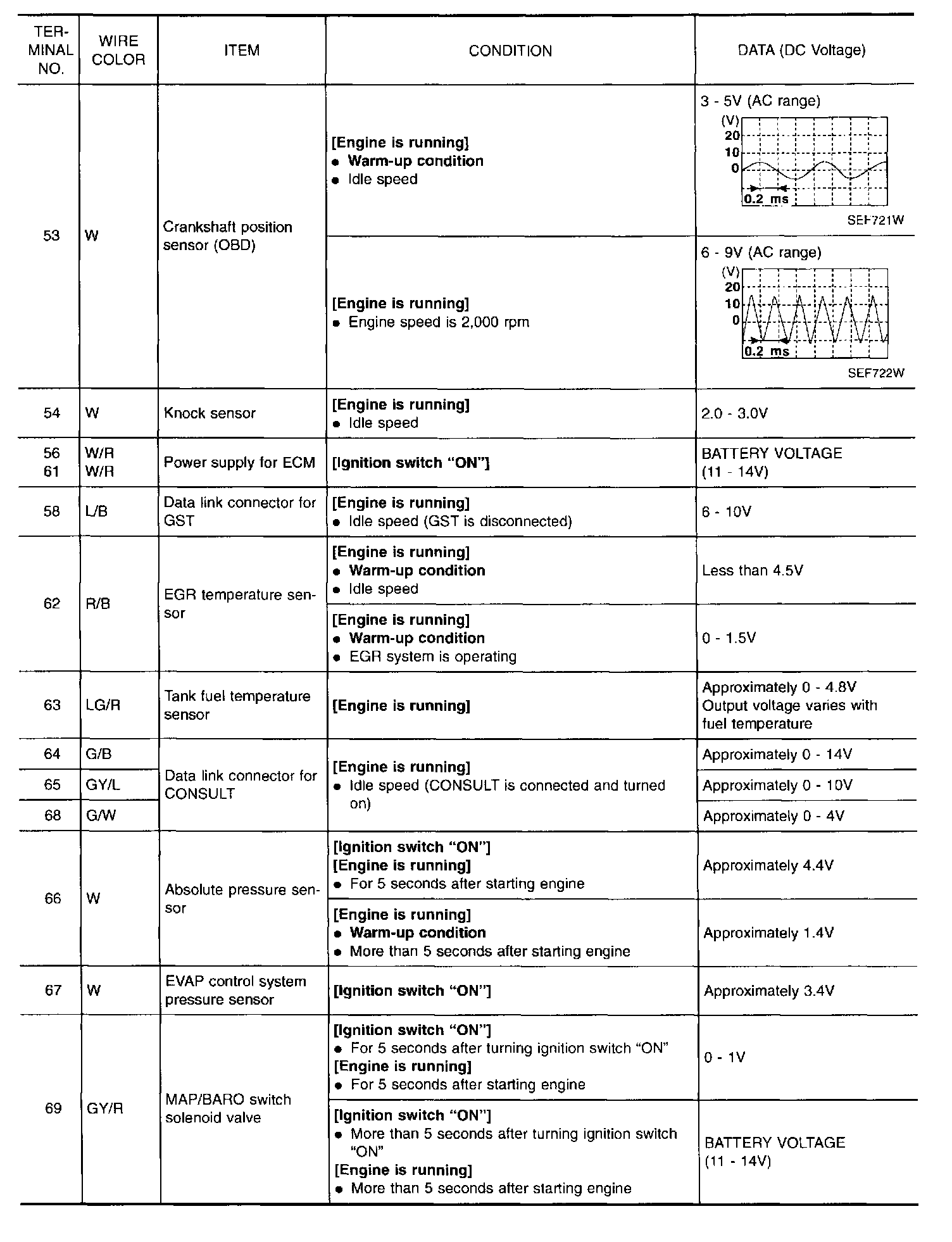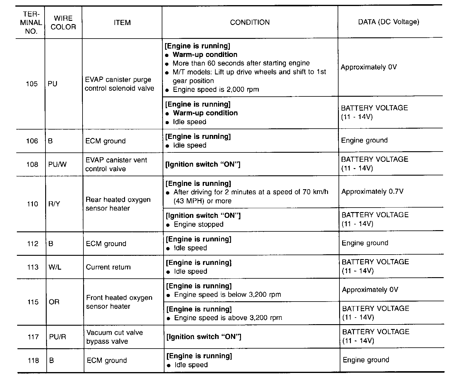 Specification data are reference values and are measured between each terminal and 43 (ECM ground).