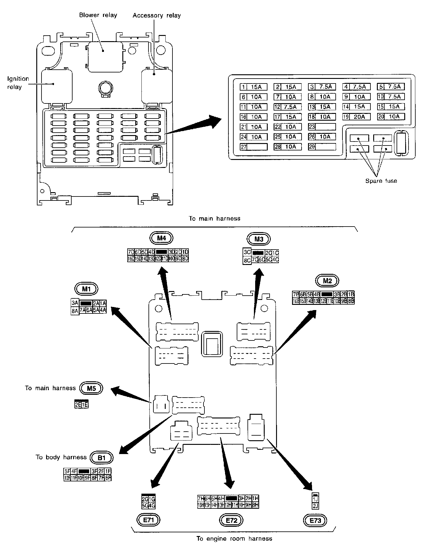 M1,M2,M3,M4,M5,B1,E71,E72,E73 Connector Views: