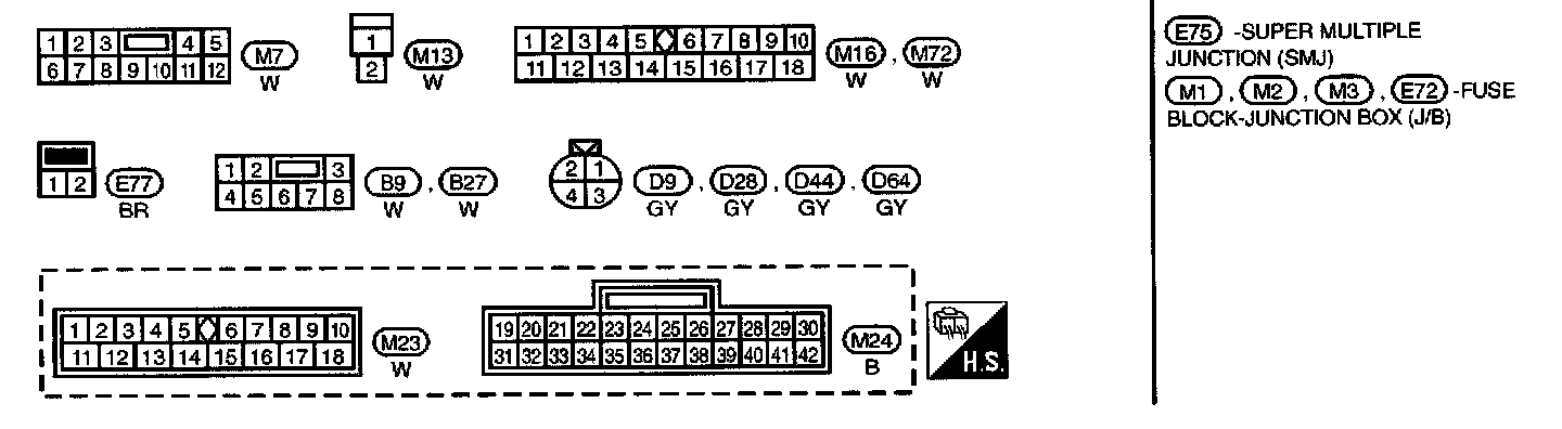 E75, M1, M2, M3, E72 Super Multiple Junction and Fuse Block - Junction Box (J/B) Terminal Arrangement