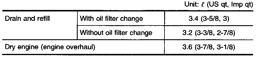 - The refill capacity depends on the oil temperature and drain time. Use these specifications for reference only. Always use the dipstick to determine when the proper amount of oil is in the engine.