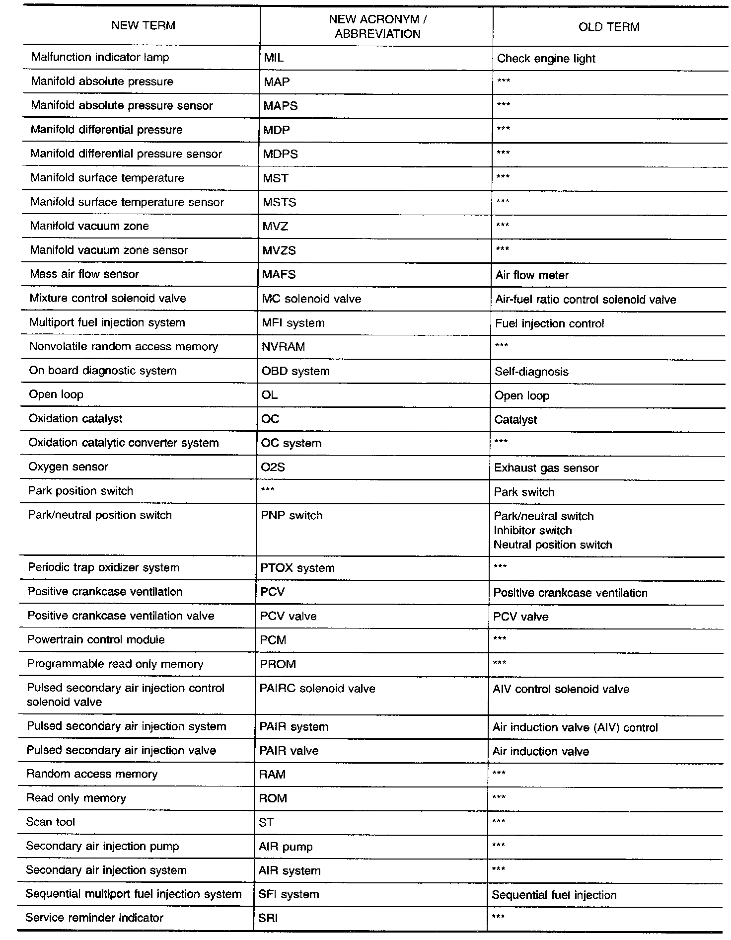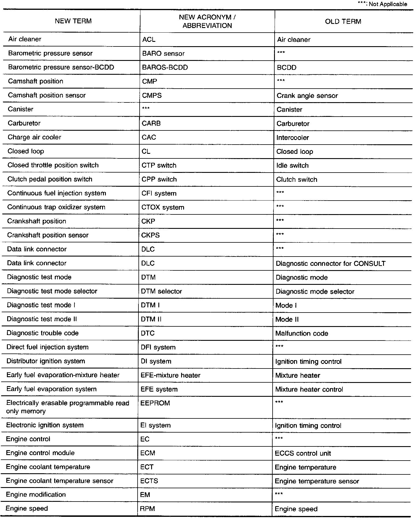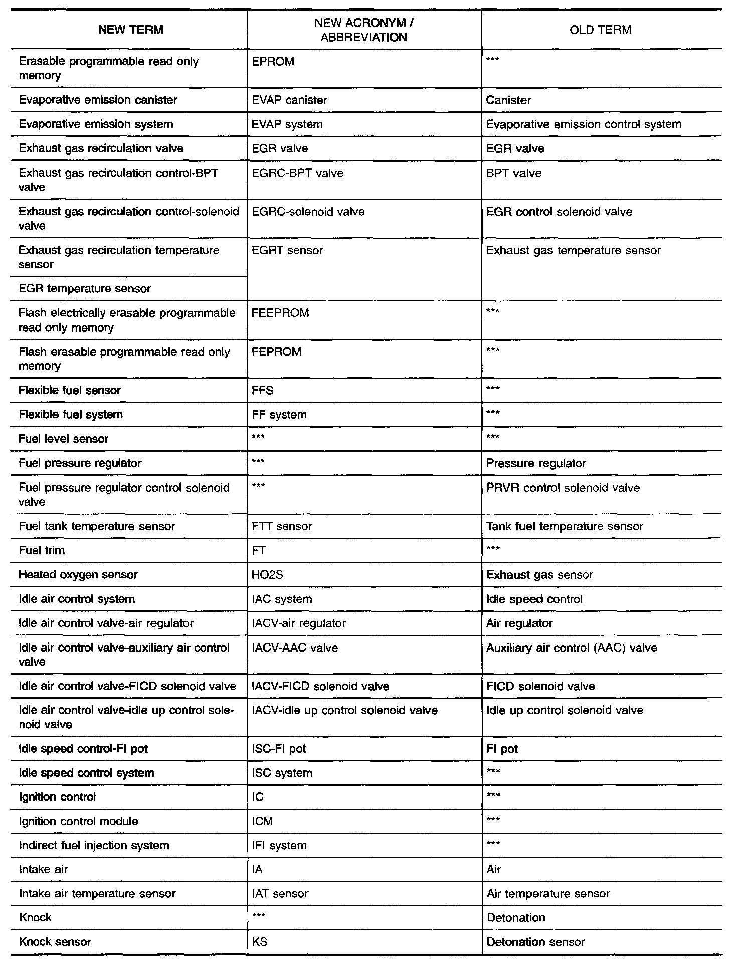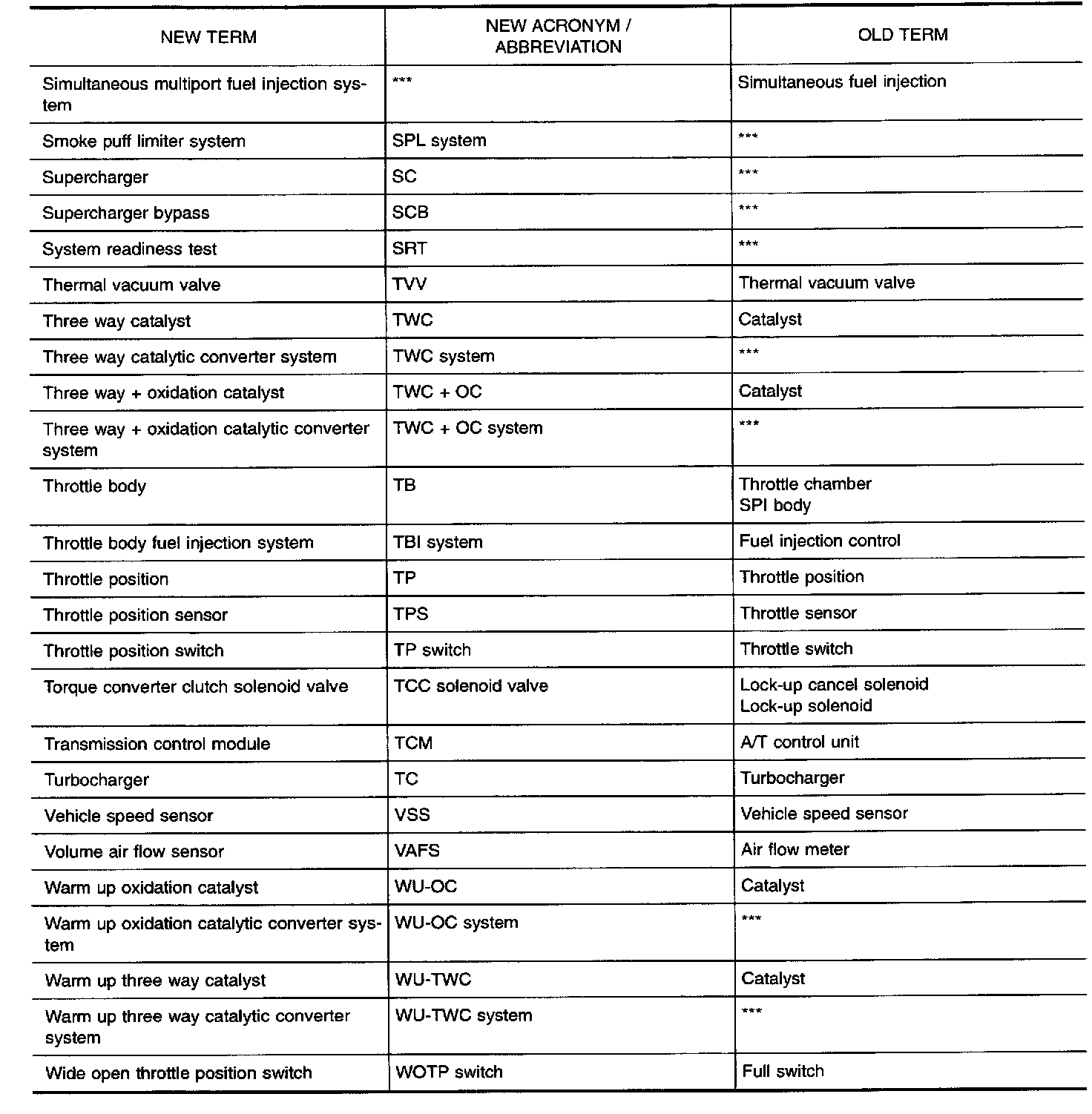 SAE J1930 Terminology ListAll emission related terms used in this publication in accordance with SAE J1930 are listed. Accordingly, new terms, new acronyms/abbreviations and old terms are listed in the chart.