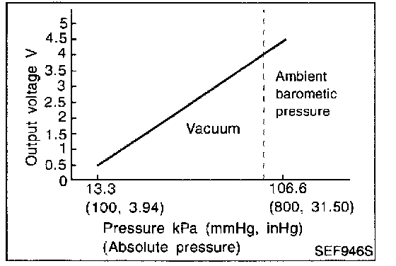 detects ambient barometric pressure and sends the voltage signal to the ECM. As the pressure increases, the voltage rises.