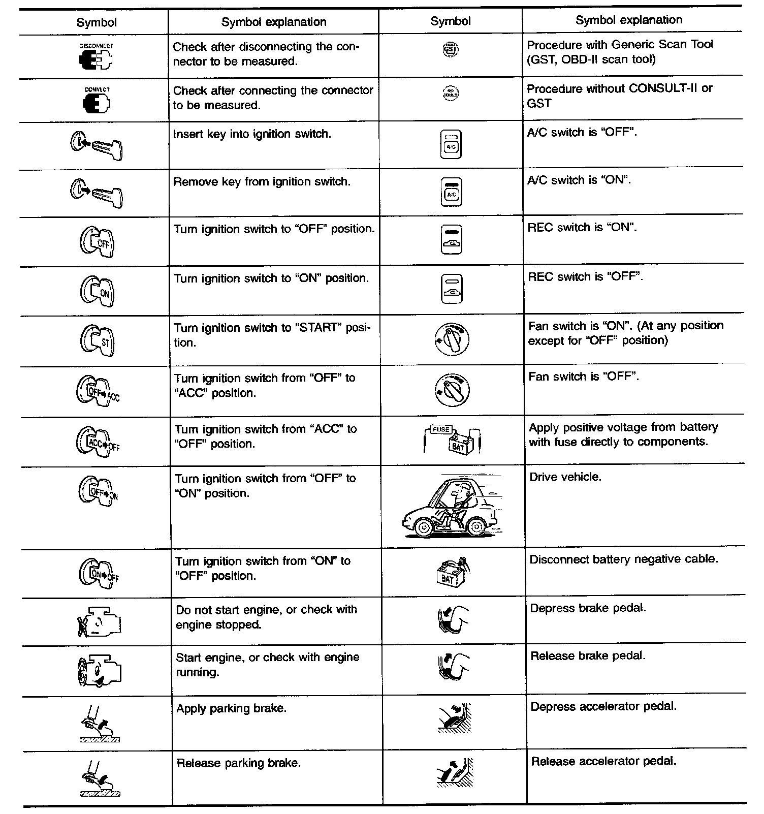 Key to Symbols Signifying Measurements or Procedures