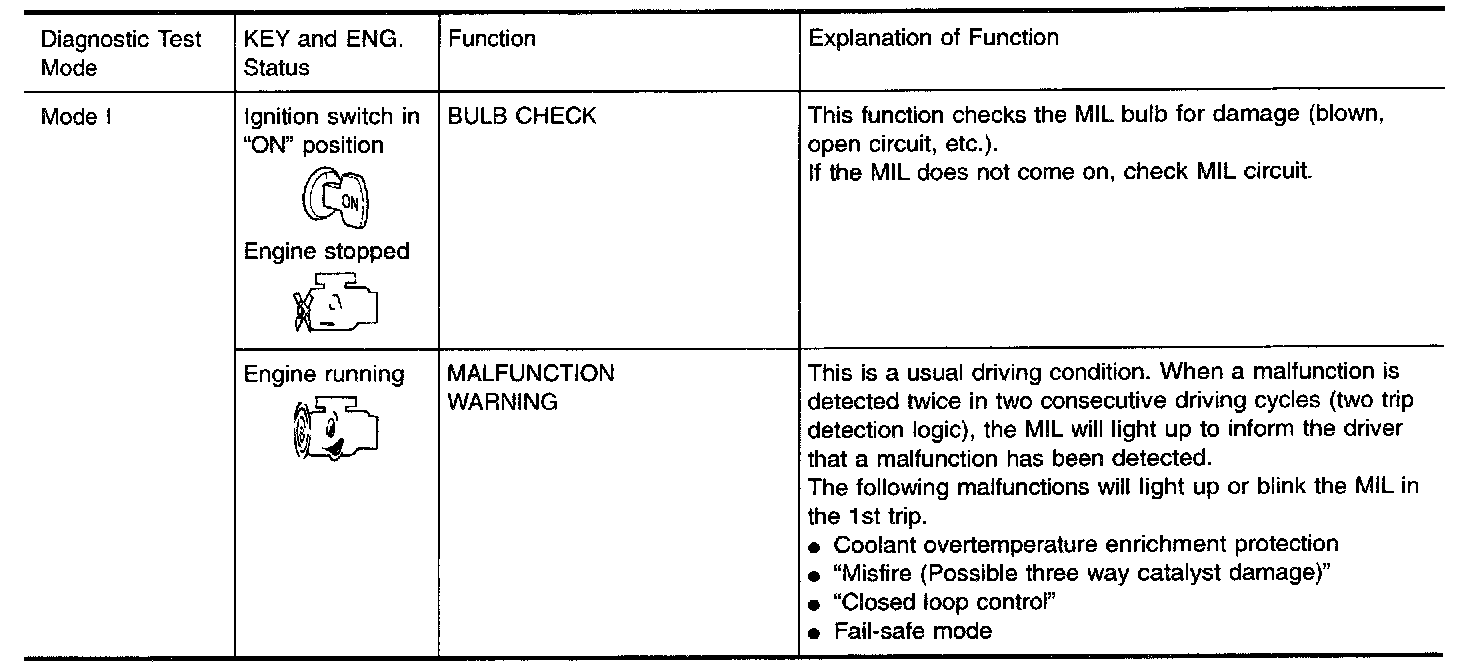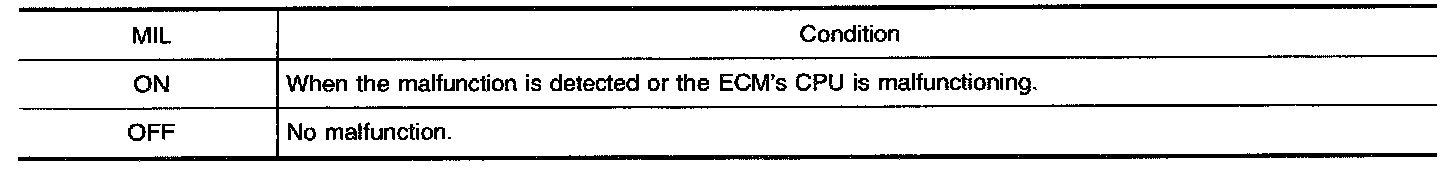 1. The MIL will light up when the ignition switch is turned ON without the engine running. This is a bulb check.