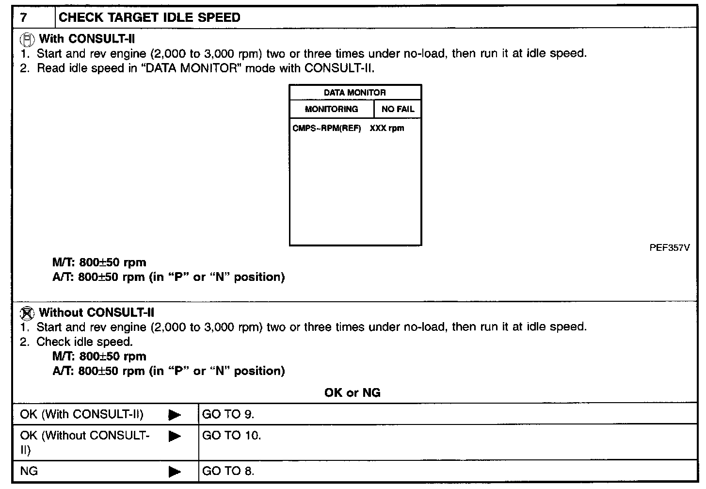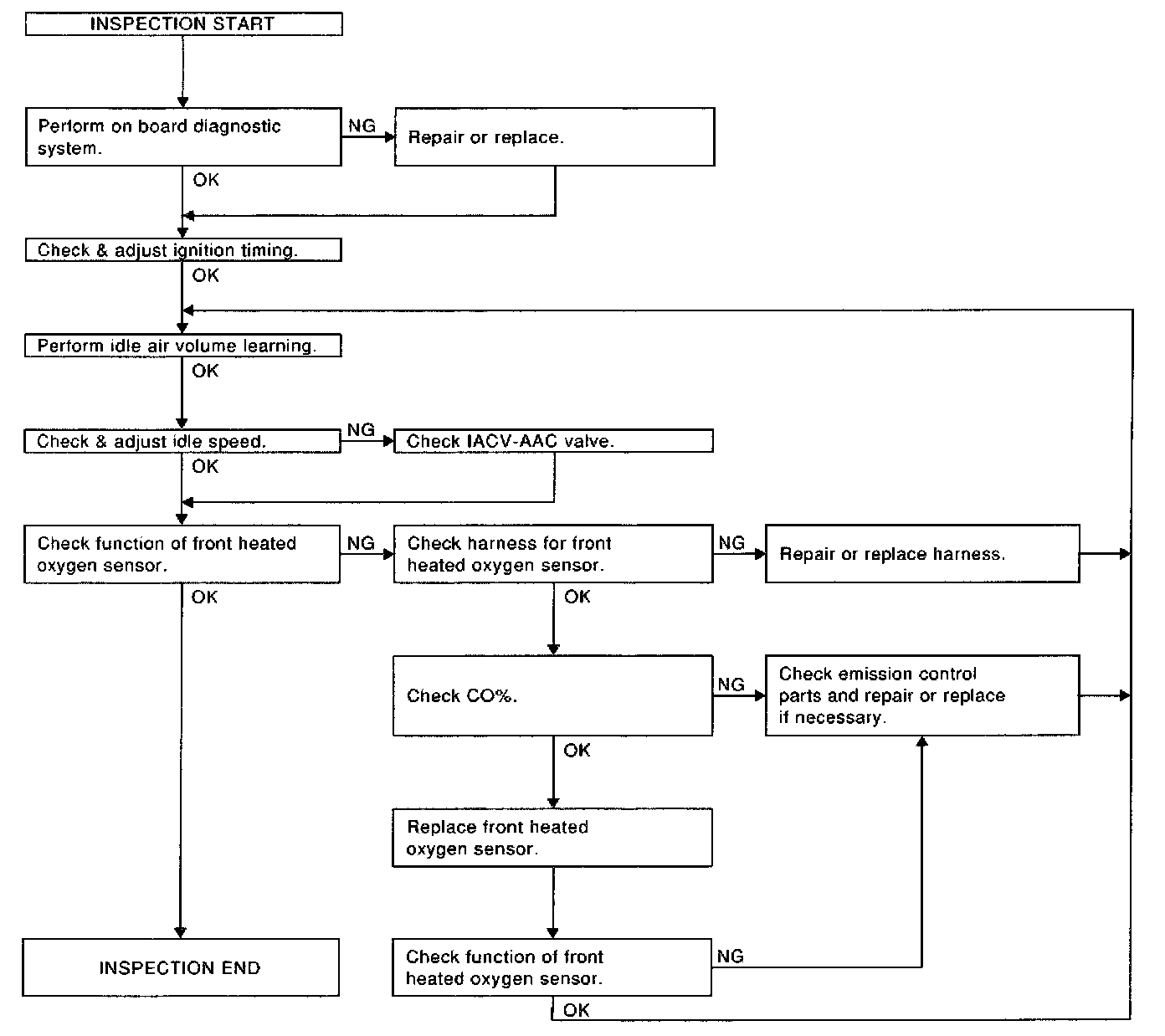 - On models equipped with air conditioner, checks should be carried out while the air conditioner is "OFF".
