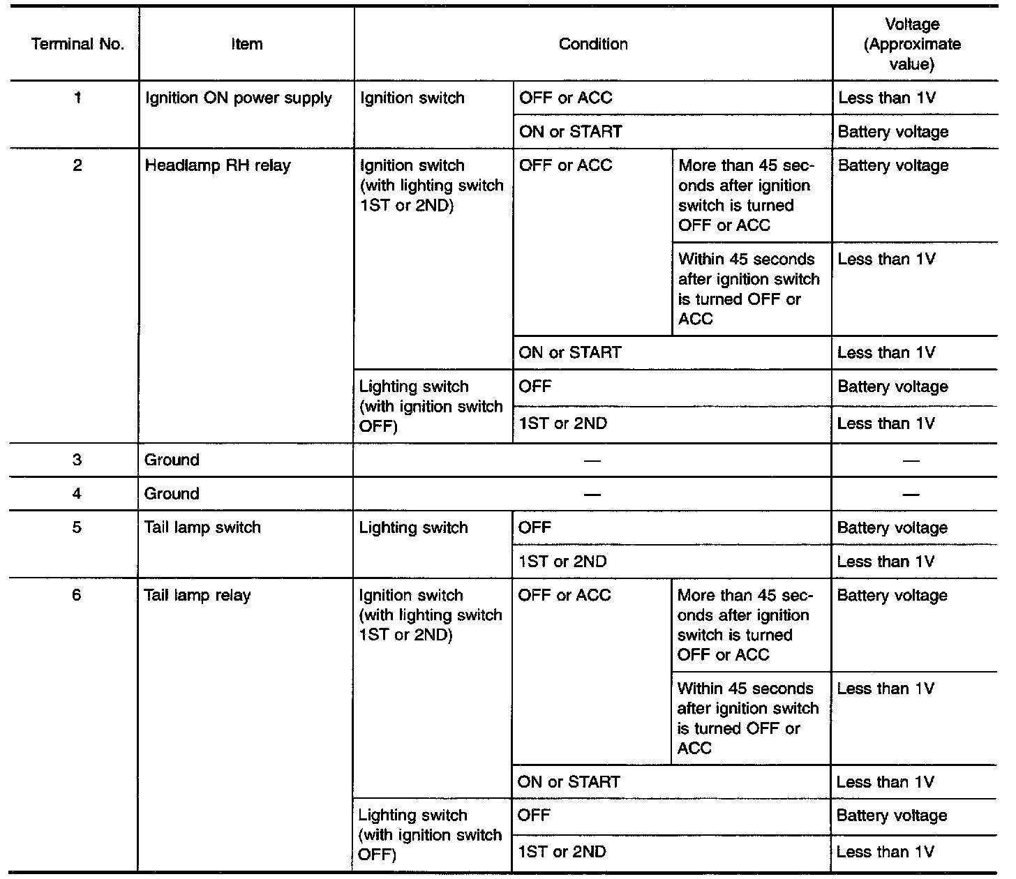 Battery Saver Control Unit Inspection Table (Terminal No. 1 - 6) (USA):