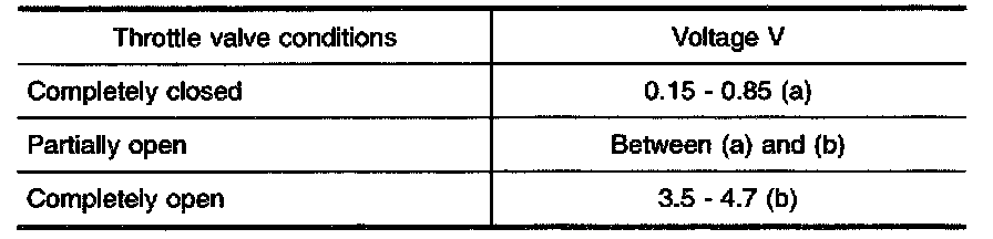 8. Check voltage of "THRTL POS SEN" under the following conditions.