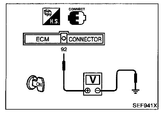 7. Check voltage between ECM terminal 92 (Throttle position sensor signal) and ground under the following conditions.