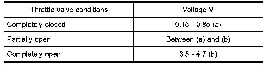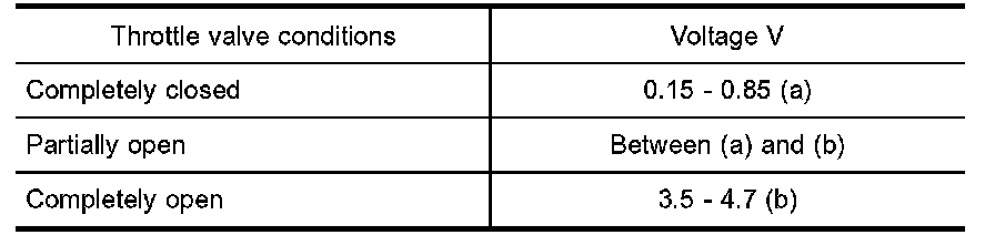 8. Check voltage of "THRTL POS SEN" under the following conditions.