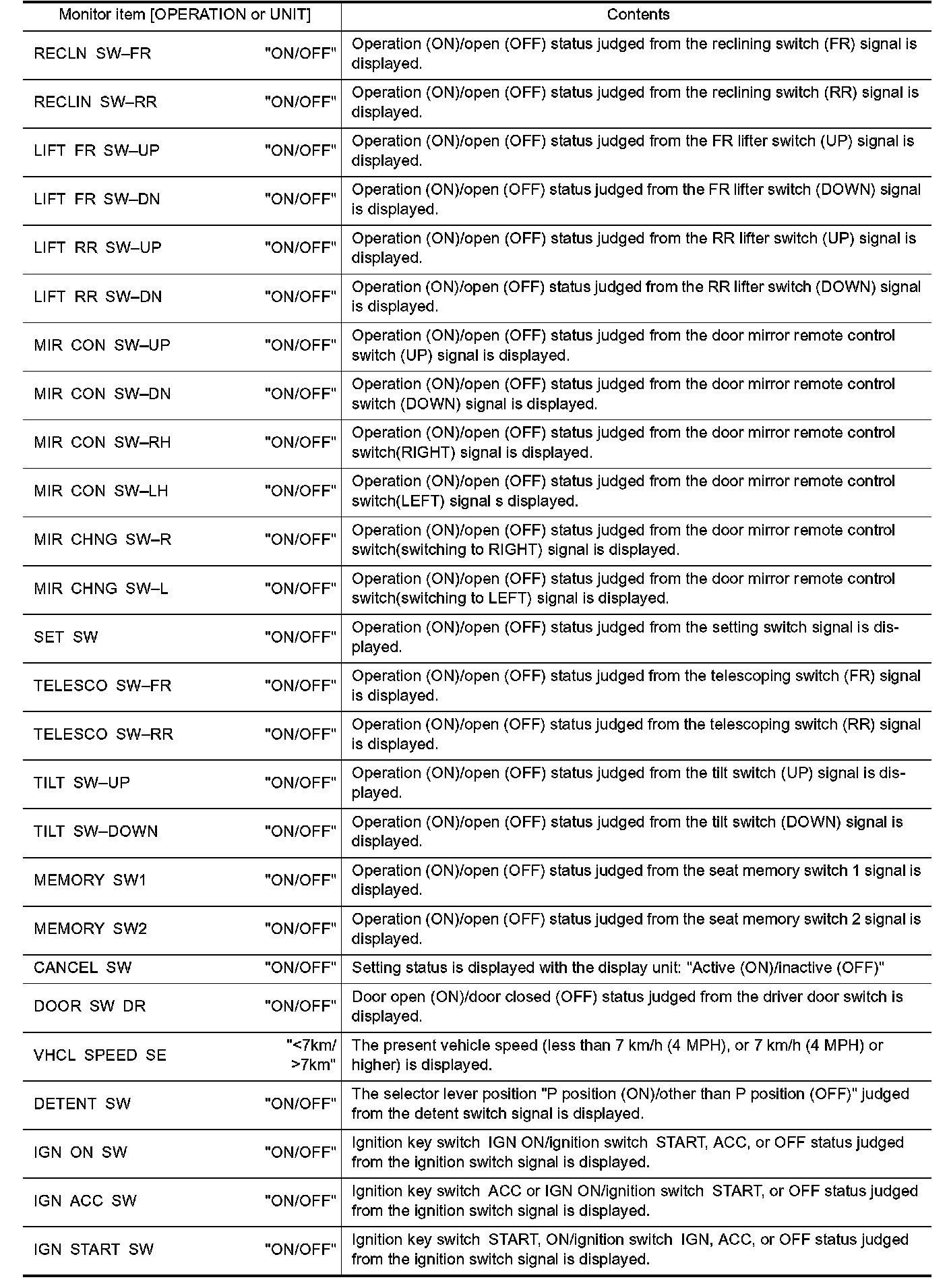 5. If "SELECTION FROM MENU" is selected, touch the desired monitor item. If "MAIN SIGNALS" is selected, main items are monitored.