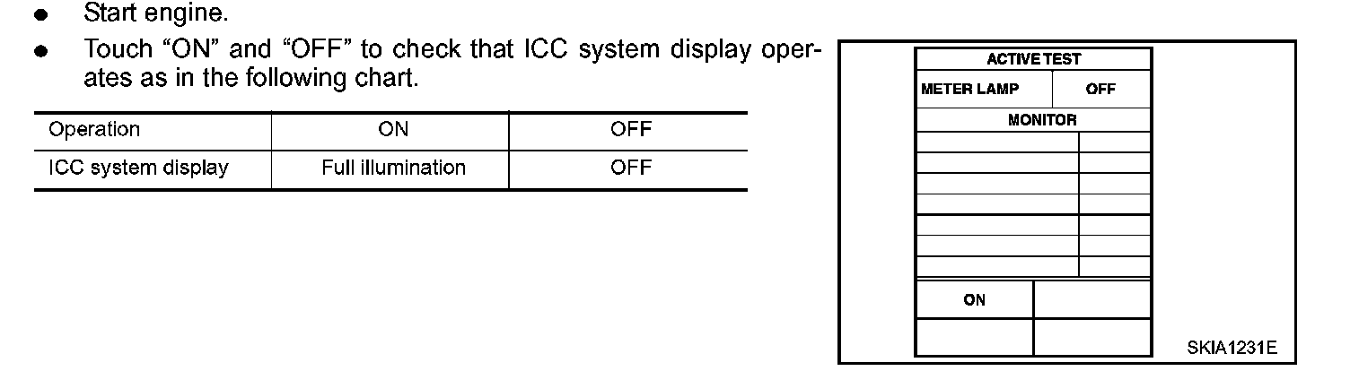 Active test cannot be started while ICC system warning indicator illuminates.