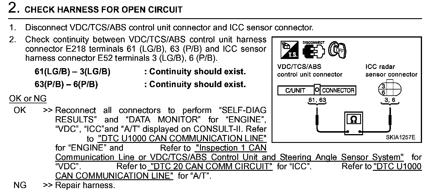 Circuit Check VDC/TCS/ABS Control Unit And ICC Sensor Step 1: