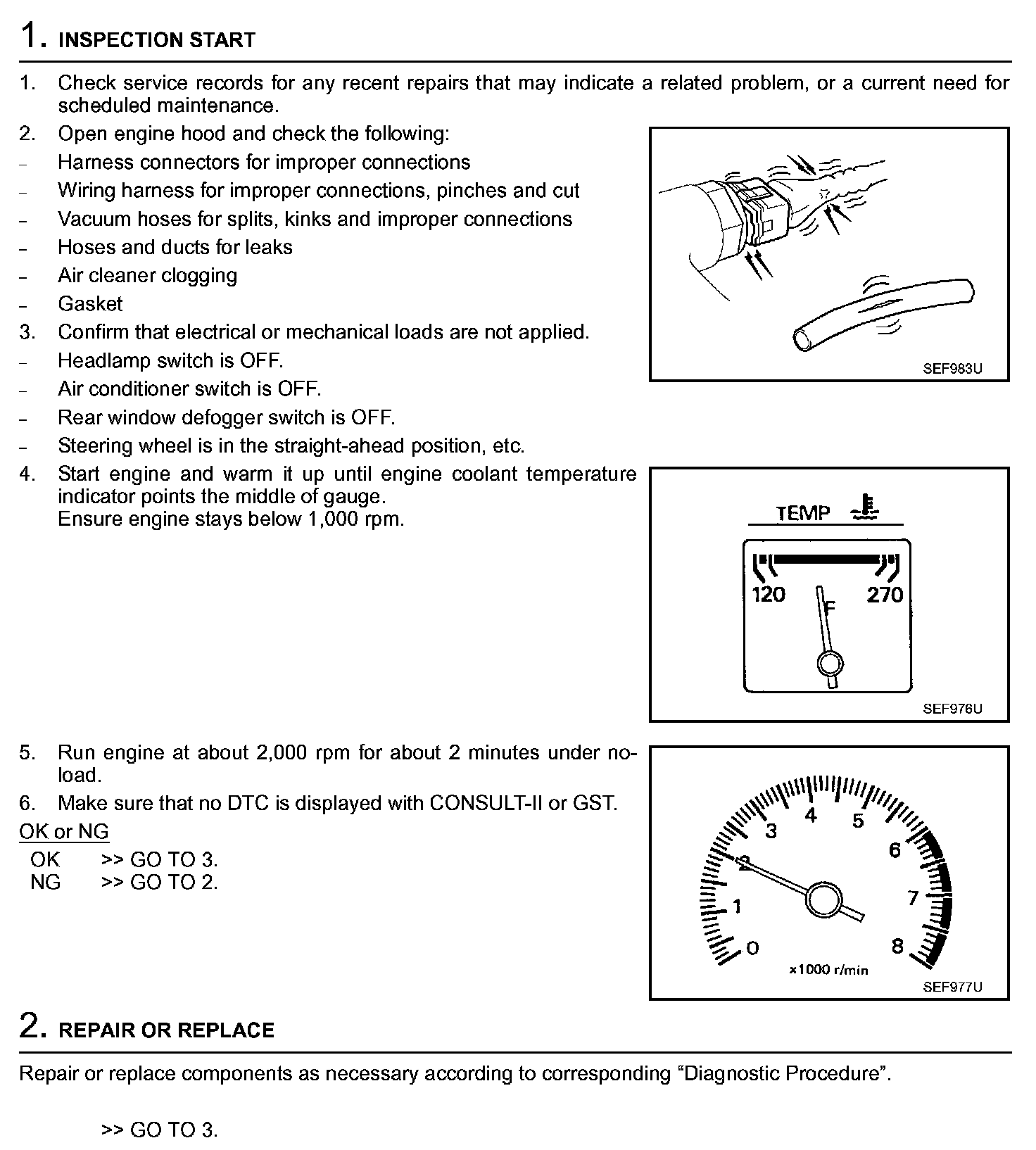 2. On air conditioner equipped models, checks should be carried out while the air conditioner is "OFF".