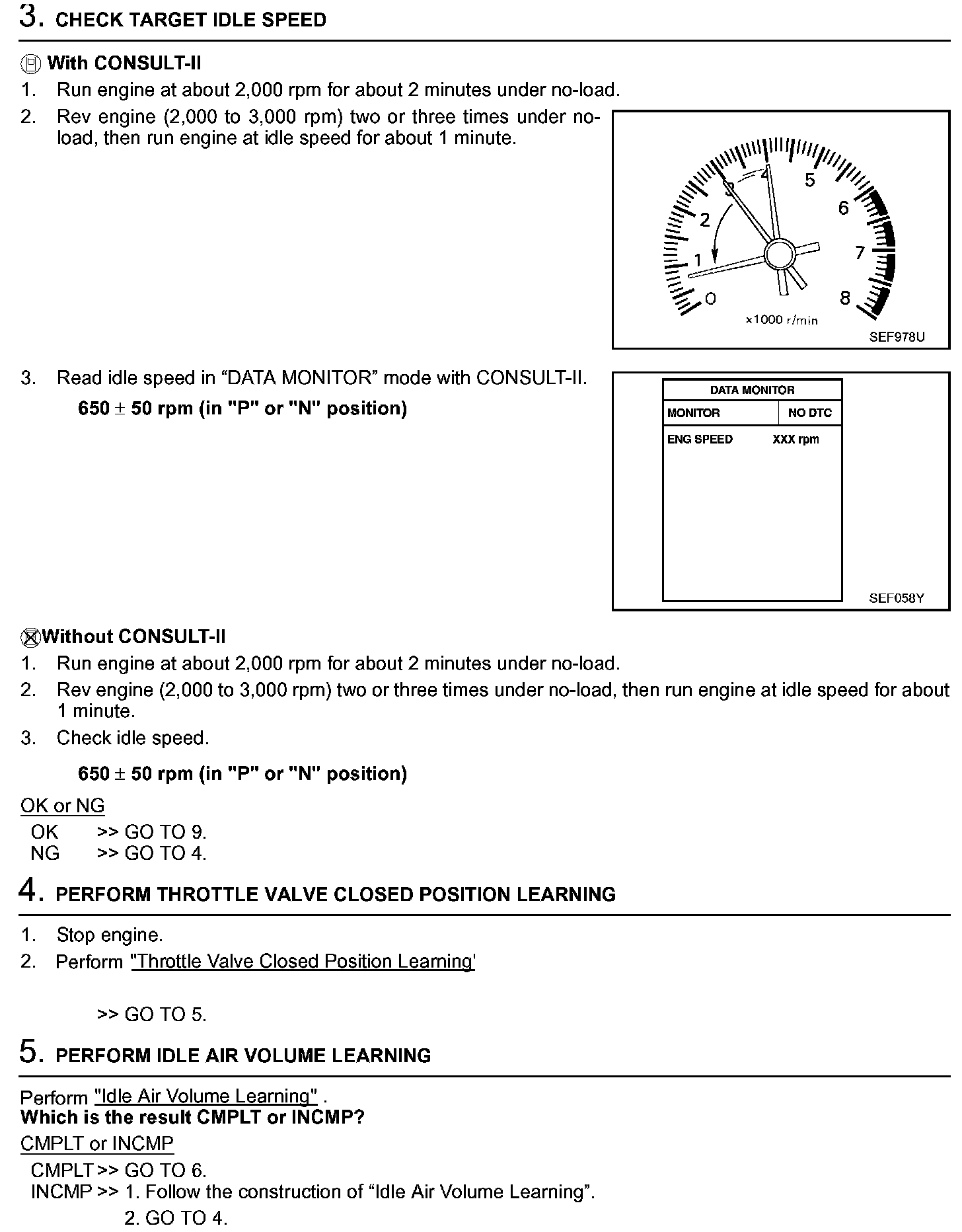 3. On automatic transmission equipped models, when checking idle rpm, ignition timing and mixture ratio, checks should be carried out while shift lever is in "N" position.