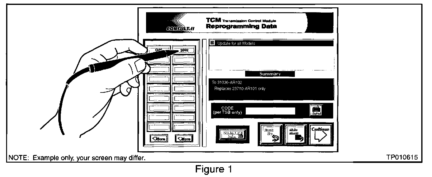 40. Select the correct TCM program to install from the choices on the CONSULT-II screen (see Figure 10).