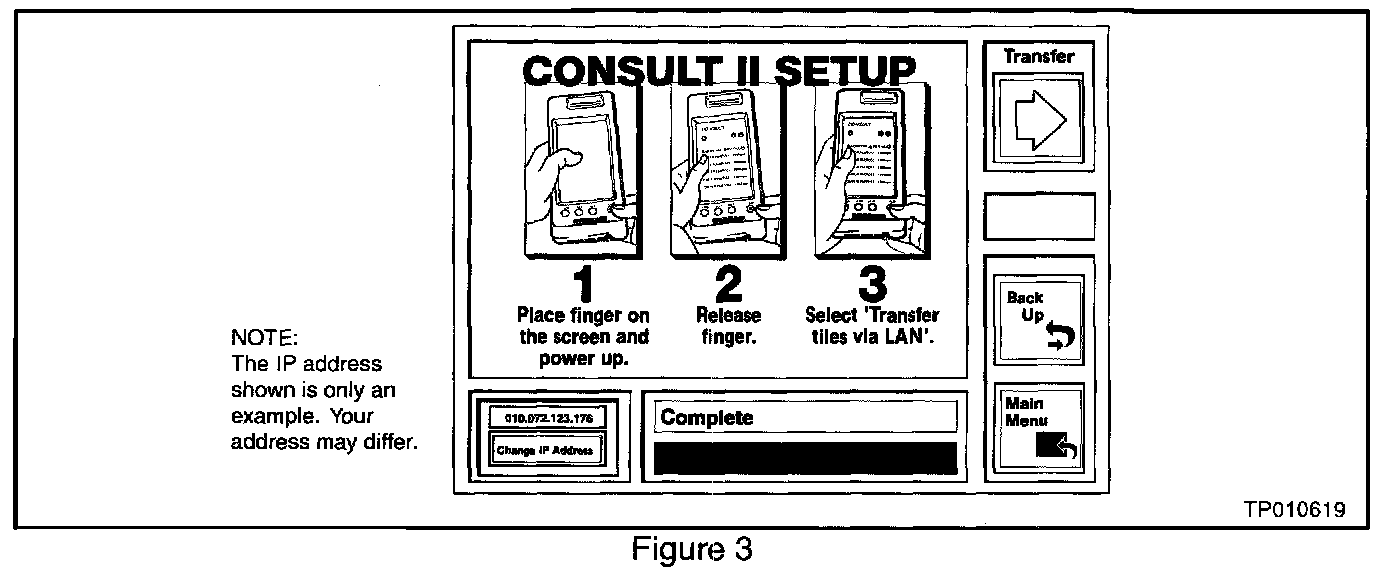 11. When transfer is complete select the "Main Menu" button on ASIST. Turnoff CONSULT-II and disconnect the AC power cord and the Ethernet cable from CONSULT-II.