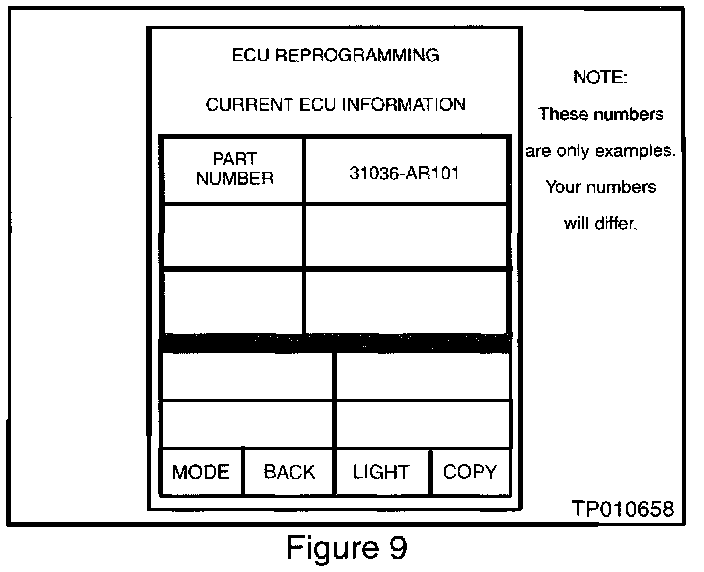 37. Press "CHECK TCM P/N" to confirm (i.e., take note of) the current TCM part number on the vehicle to be reprogrammed (see Figure 9).