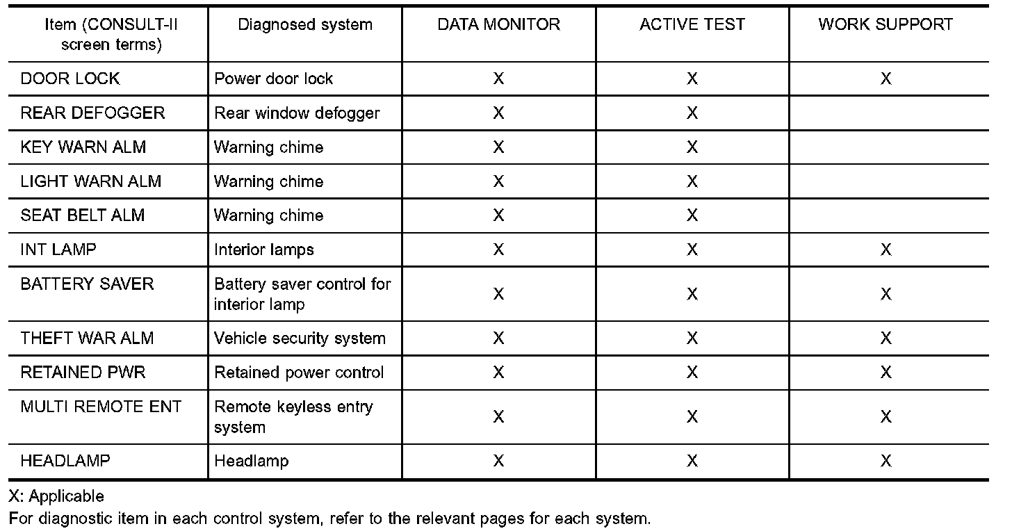 CONSULT-II / Items Application