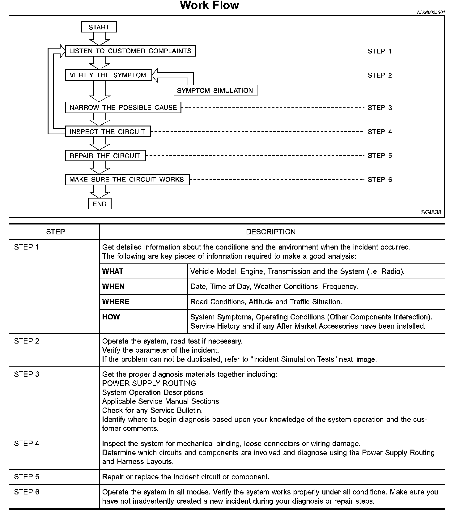 1. Before performing trouble diagnosis, read the "Preliminary Check", the "Symptom Chart" or the "Work Flow".