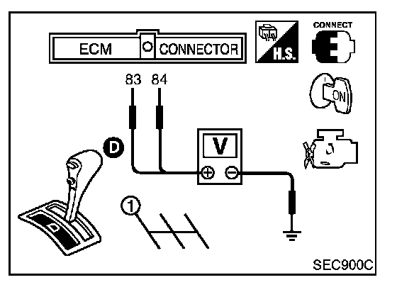 5. Check voltage between ECM terminals 83 (TP sensor 1), 84 (TP sensor 2) and engine ground under the following conditions.