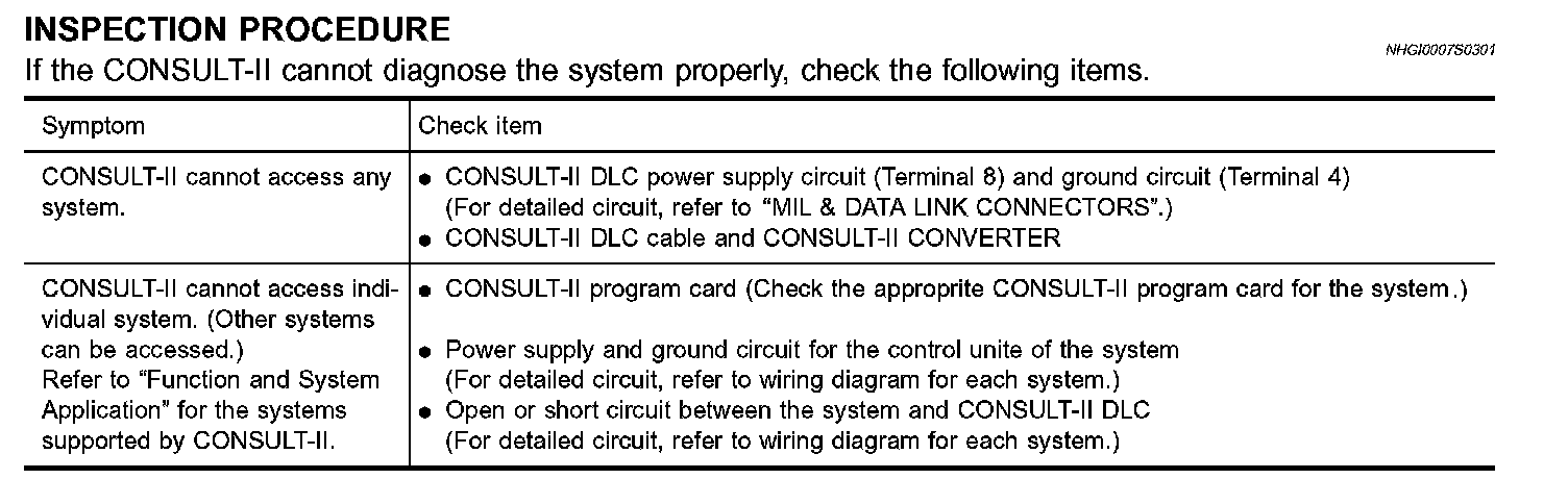 A short in a DDL circuit connected to a control unit in one system may affect CONSULT-II access to other systems.