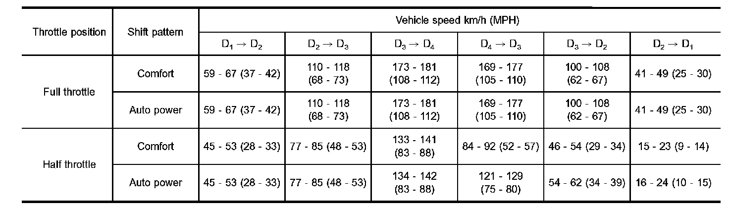 VEHICLE SPEED WHEN SHIFTING GEARS THROTTLE POSITION