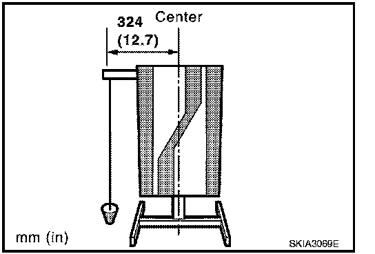 2. Suspend a thread with weight on the tip of the thread to 324 mm (12.7 in) left side of the target board from the center of the target board on top.