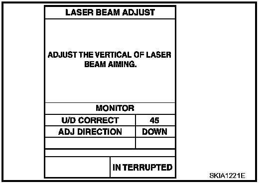 8. After the CONSULT-II displays "ADJUST THE VERTICAL OF LASER" turn the up-down direction adjustment screw until "U/D CORRECT" value is set in the range of ±4.