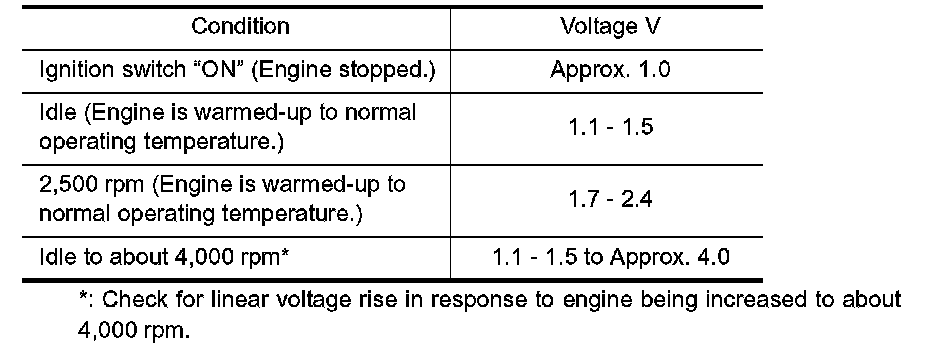 3. Check voltage between ECM terminal 91 (Mass air flow sensor signal) and ground.