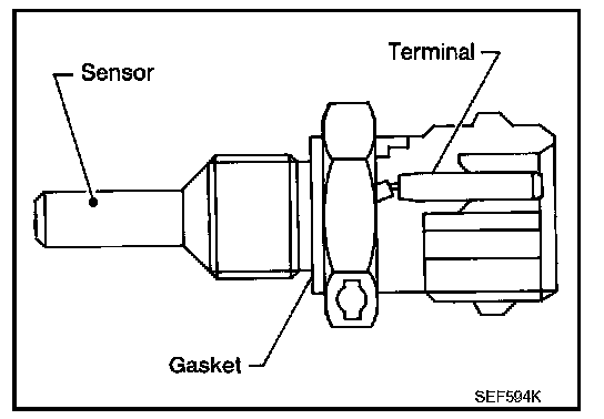 The engine coolant temperature sensor is used to detect the engine coolant temperature. The sensor modifies a voltage signal from the ECM. The modified signal returns to the ECM as the engine coolant temperature input. The sensor uses a thermistor which is sensitive to the change in temperature. The electrical resistance of the thermistor decreases as temperature increases.