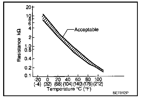 ENGINE COOLANT TEMPERATURE SENSOR1. Check resistance between engine coolant temperature sensor terminals 1 and 2 as shown in the figure.