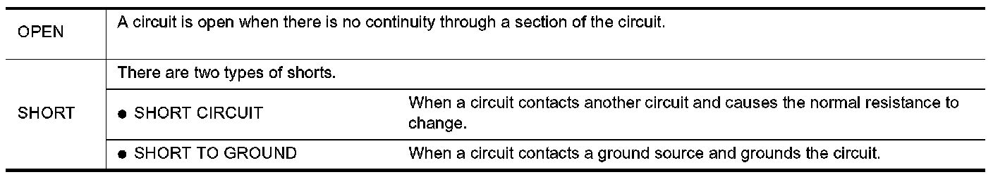 The continuity check is used to find an open in the circuit. The digital multimeter (DMM) set on the resistance function will indicate an open circuit as over limit (no beep tone or no ohms symbol). Make sure to always start with the DMM at the highest resistance level.