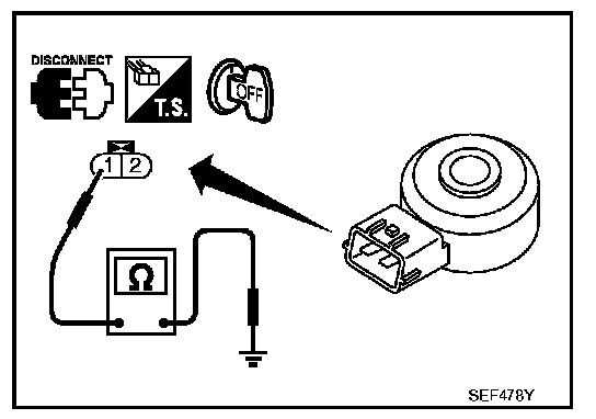 KNOCK SENSORCheck resistance between knock sensor terminal 1 and ground.