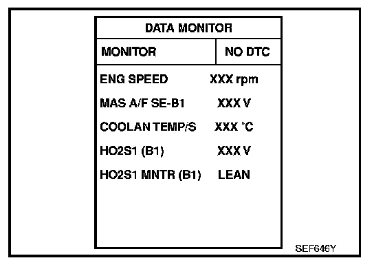 - "HO2S1 MNTR (B1)/(B2)" in "DATA MONITOR" mode changes from "RICH" to "LEAN" to "RICH" more than 5 times in 10 seconds.
