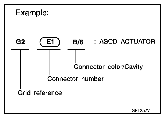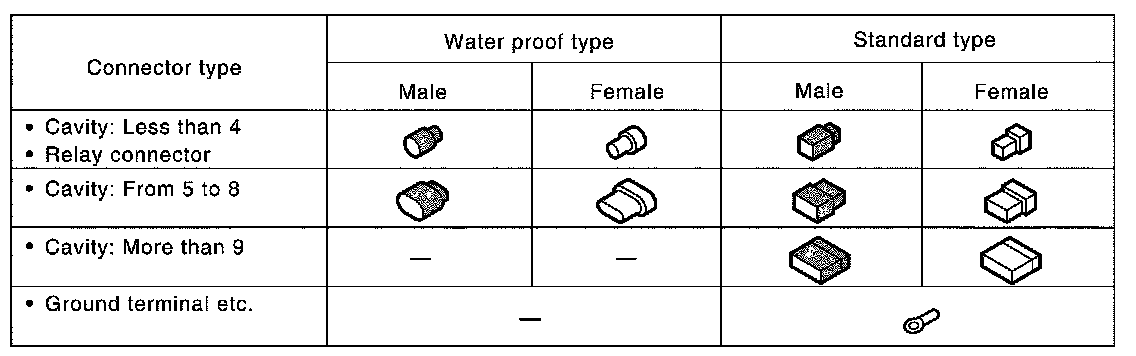 Main symbols of connector (in Harness Layout) are indicated in the figure.