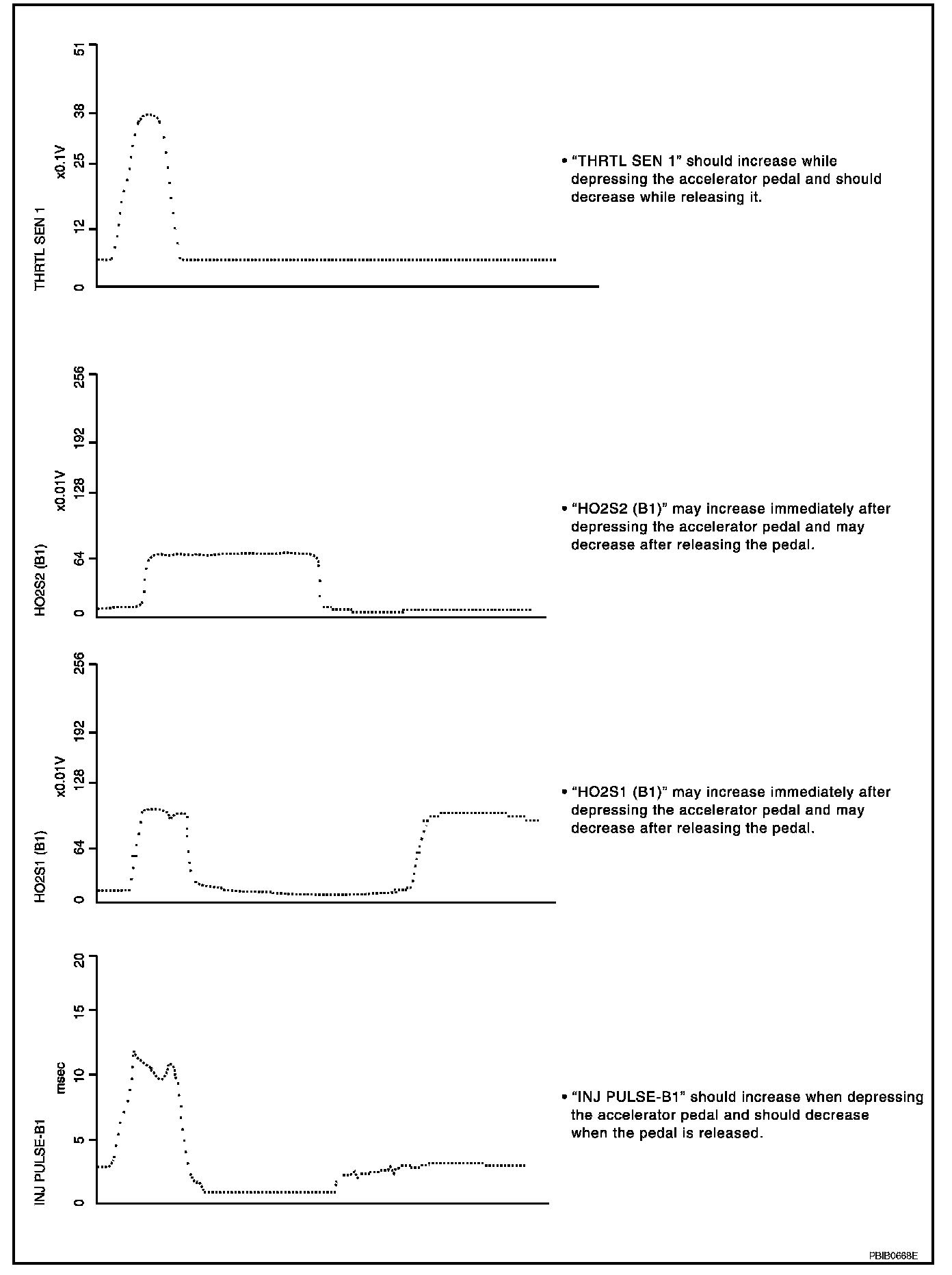 ENG SPEED, MAS A/F SE-B1, THRTL SEN 1, HO2S2 (B1), HO2S1 (B1), INJ PULSE-B1