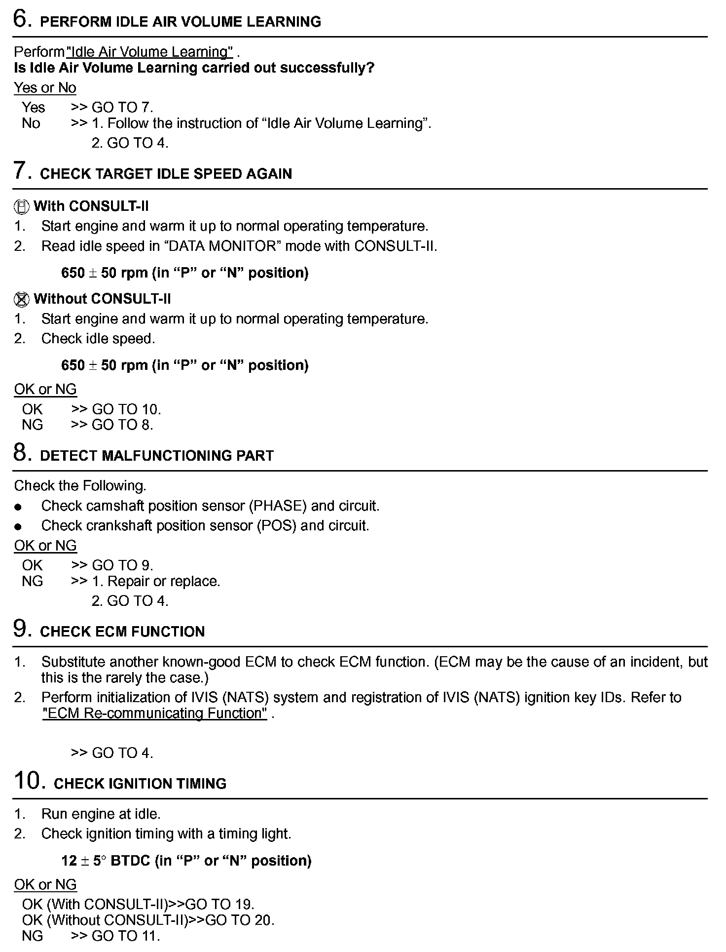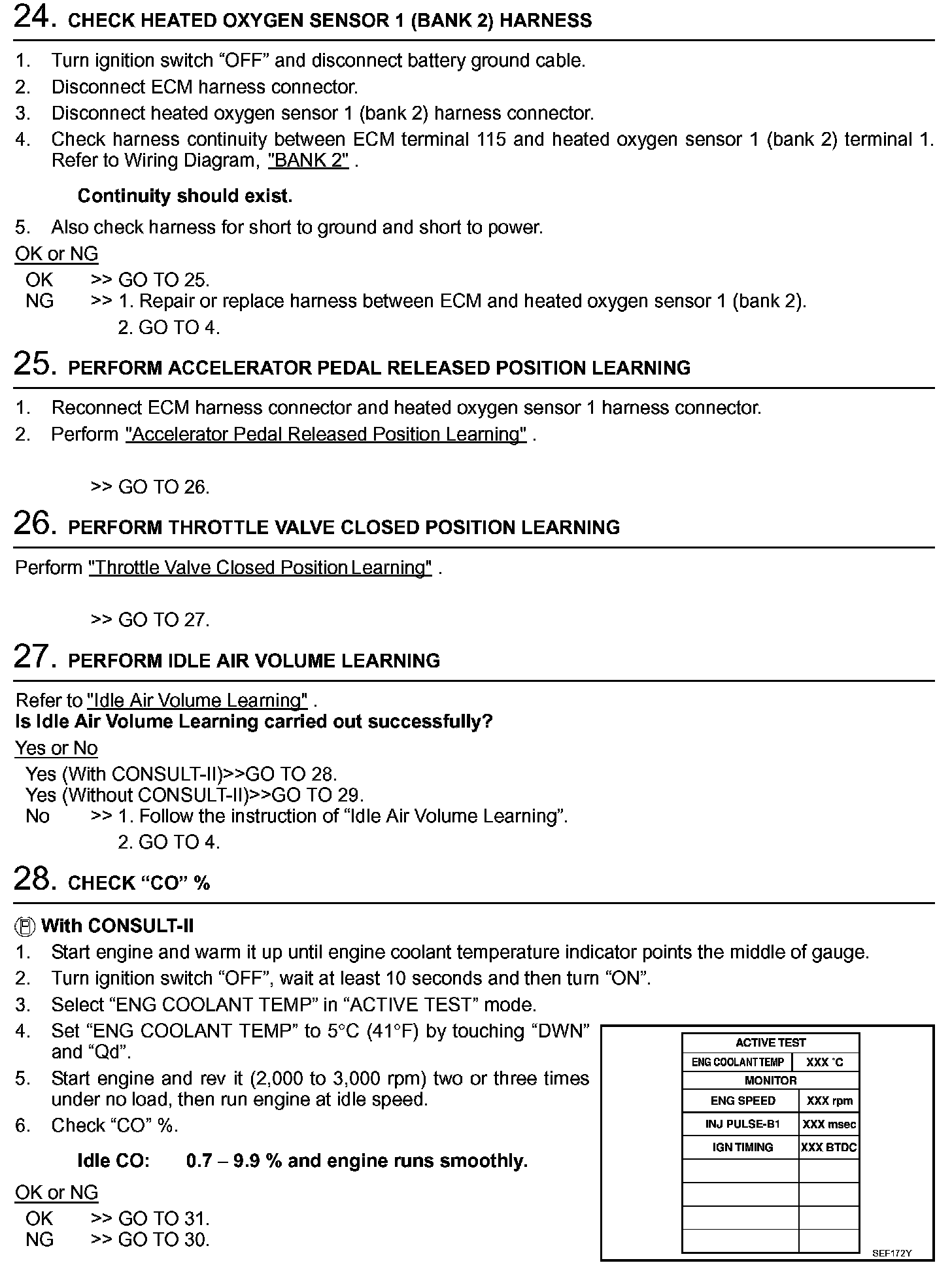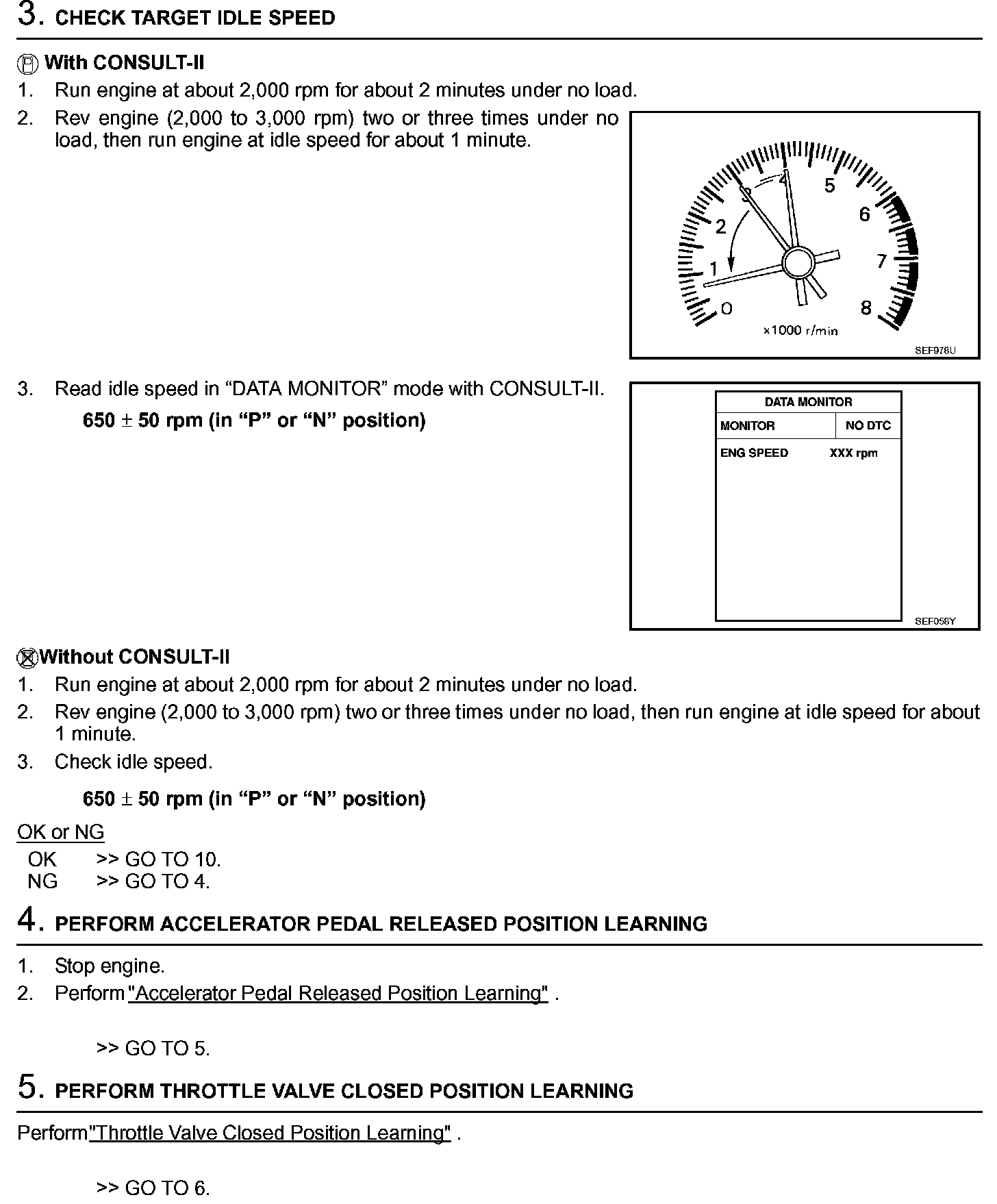 2. On air conditioner equipped models, checks should be carried out while the air conditioner is "OFF".