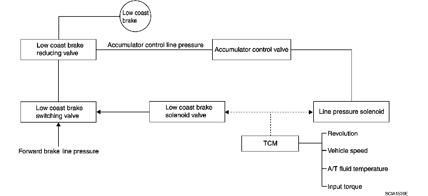 ^ The operation of the low coast brake solenoid switches the low coast brake switching valve and controls the coupling and releasing of the low coast brake. The low coast brake reducing valve controls the low coast brake coupling force.
