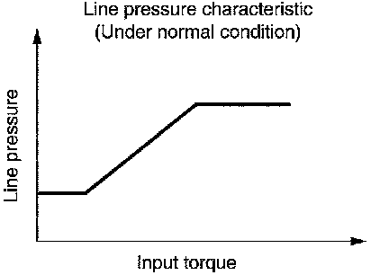 The necessary and adequate line pressure for shift change is set. For this reason, line pressure pattern setting corresponds to input torque and gearshift selection. Also, line pressure characteristic is according to engine speed, during engine brake operation.