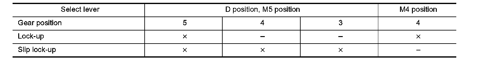 Lock-up Operation Condition Table