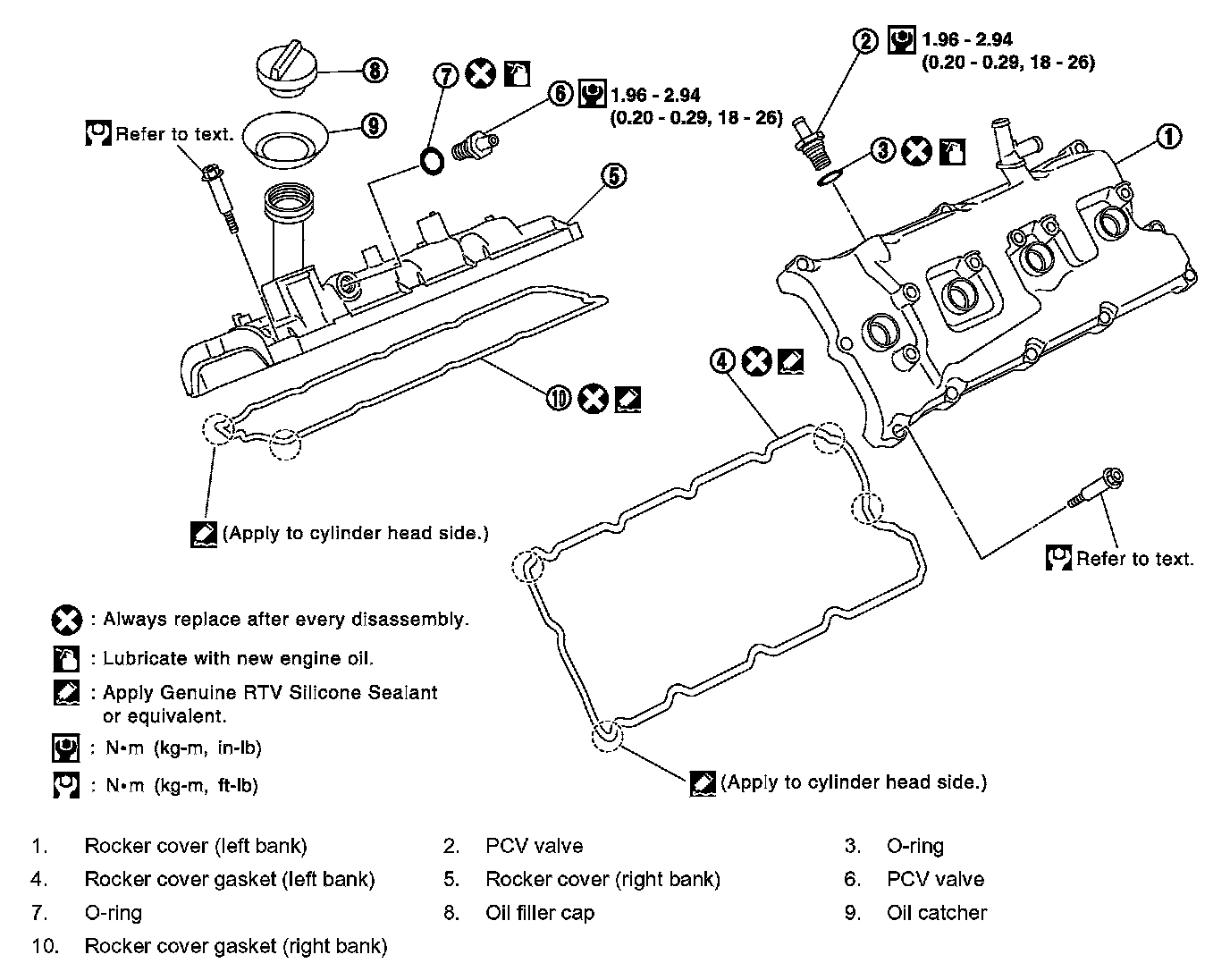 2) 7.4 - 9.3 Nm (0.75 - 0.95 kg-m, 66 - 82 inch lbs.)