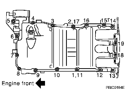 Oil strainer 19.6 - 23.5 Nm (2.0 - 2.4 kg-m, 15 - 17 ft. lbs.)
