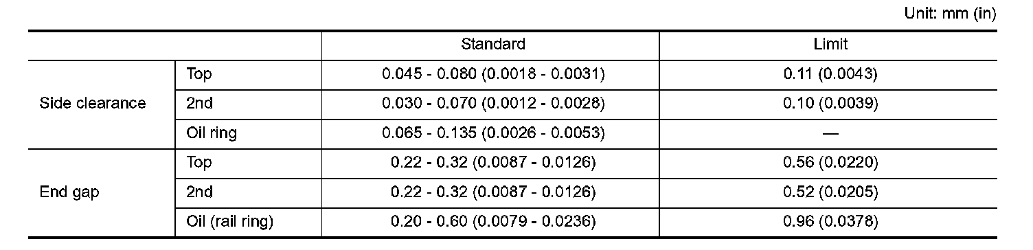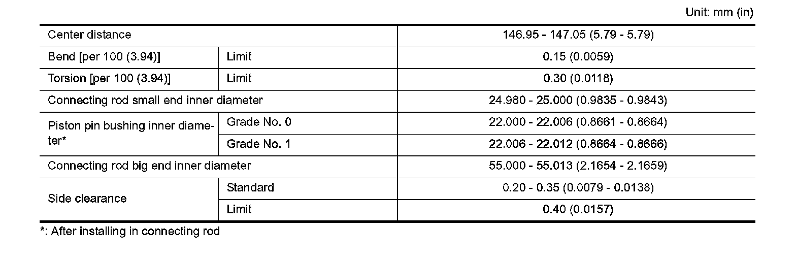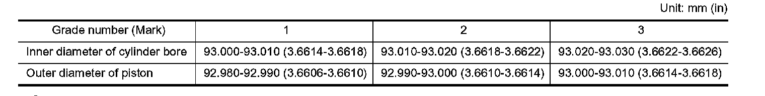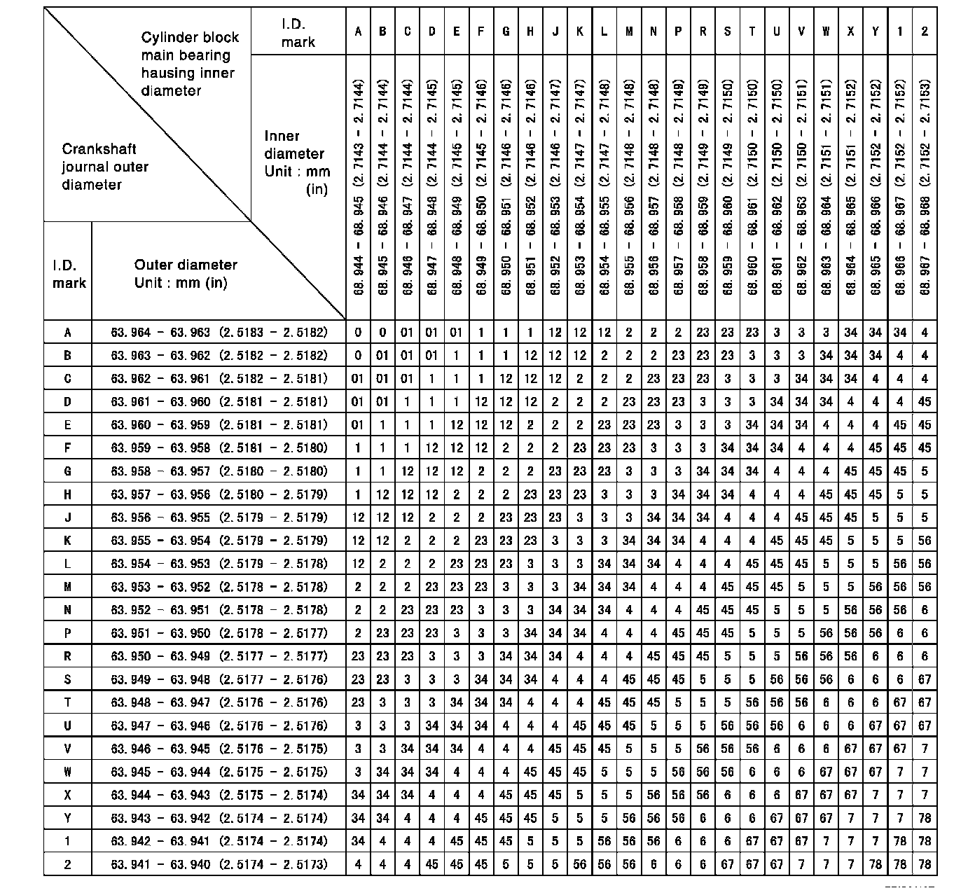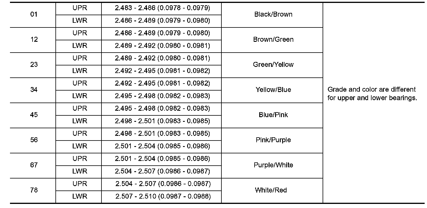 Main Bearings Selection Table (No. 2, 3 and 4 journal):