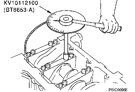CAUTION: Measure tighten angle in step "d" and "e" with angle wrench. Do not measure visually.