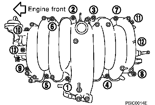 Intake manifold upper 24.5 - 31.4 Nm (2.5 - 3.2 kg-m, 18 - 23 ft. lbs.)