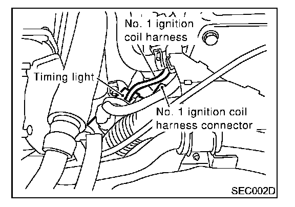 a. Attach timing light to No. 1 ignition coil harness as shown.